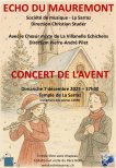 Nous organisons notre traditionnel concert de l'Avent, cette année avec la participation du Choeur mixte de la Vilanelle Echichens.